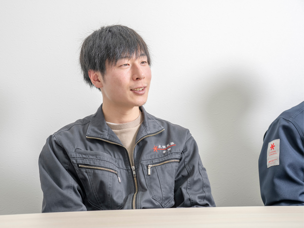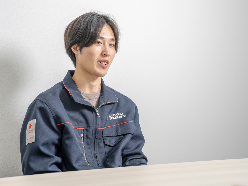 K.Hさん 私は、高校の先輩が先に当社で働いていたこともあり、学校に求人がきていたのを見かけたのが始まりです。札幌定温運輸の会社紹介には「日本で初めて冷凍配送を走らせた会社」とあり、歴史ある会社なのだと興味を持ちました。